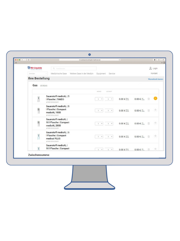 Entdecken Sie das Kundenportal und bestellen Sie online, einfach und zeitsparend Ihre medizinischen Gase, Equipment und Service.