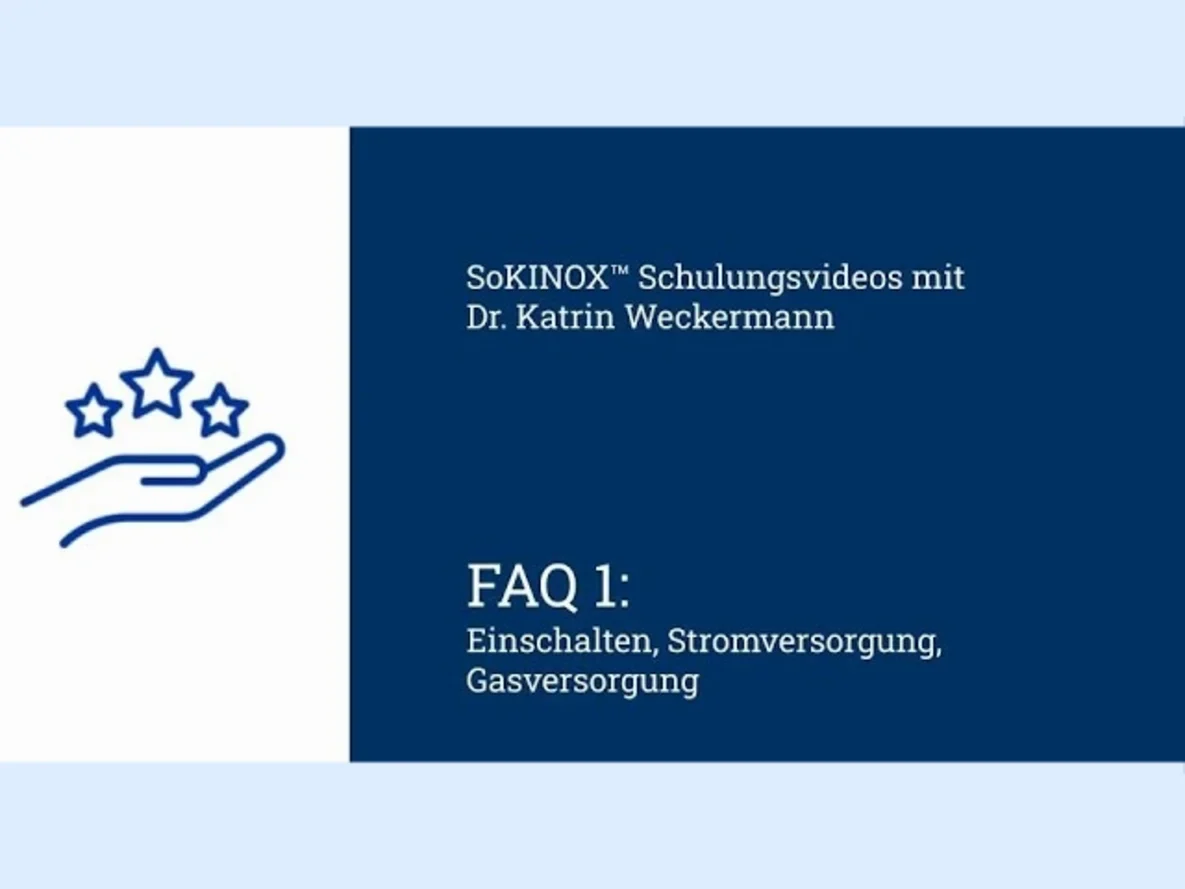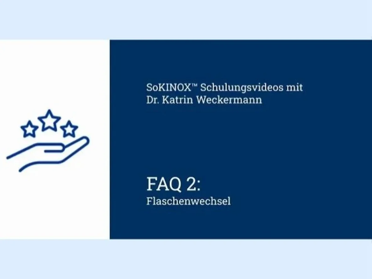 Hier finden Sie Antworten auf häufig gestellte Fragen und Fehlerquellen zum NO-Applikationsgerät SoKINOX™ & SoKINOX™ NeXT. Wischen Sie nach rechts, um zu den einzelnen Videos zu gelangen und wählen Sie das gewünschte Video aus.